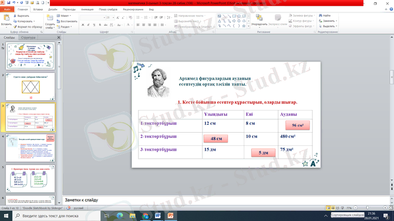 - Ауданды есептеу тәсілін ойлап тапқан Архимед екенін білдік;
