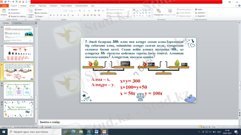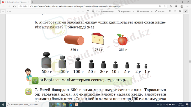 Оқушылар есепке өрнек құрып, жауабын жазады.
