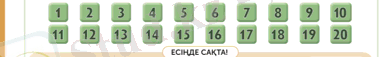 1. 1. 1. 2** 11-ден 20-ға дейінгі сандарды оқу, жазу және салыстыру;
