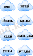 1. (Кім?) . . . отын жарды. 2. (Кім?) . . . көйлек тікті. 3. Аспанда (нелер?) . . . көрінеді. 4. Орманда биік (нелер?) өседі. 5. (Кімдер?) . . . серуенге жиналды.