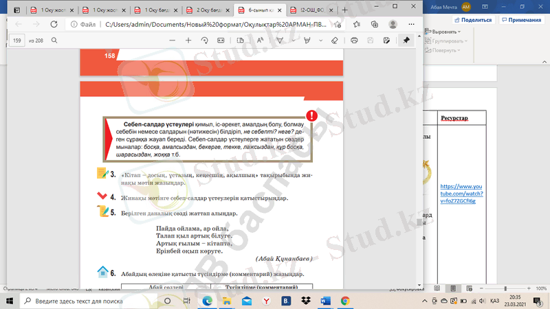 Оқушылар Абайдың өлеңі арқылы жаңа сабақтың тақырыбын анықтайды.