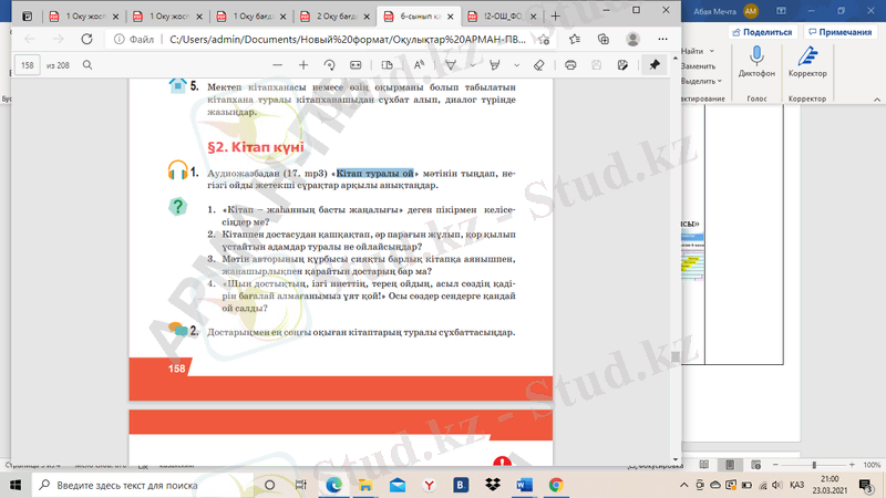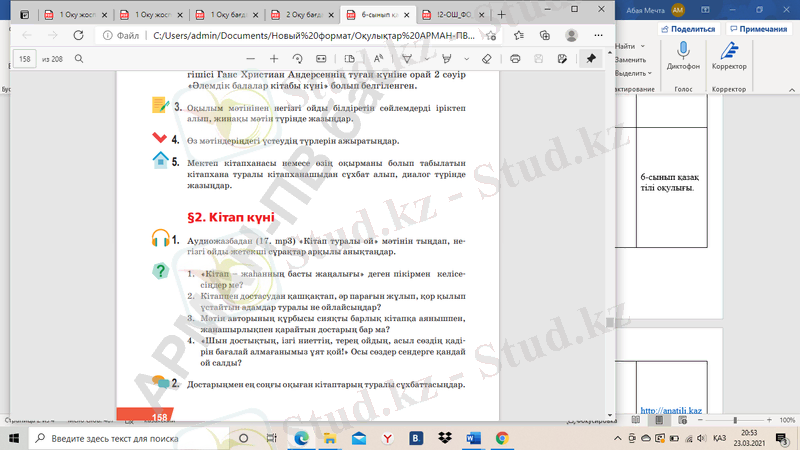 6. 1. 5. 1 тыңдалған мәтін мазмұны бойынша жалпы және нақты сұрақтарға жауап беру, мәтіндегі ақпаратты шынайы өмірмен байланыстыру;