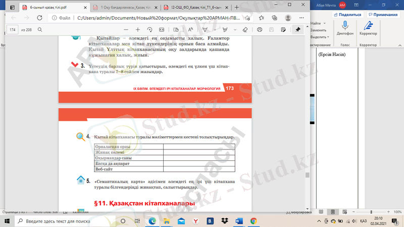 - Үстеулерді қатыстырып, әлемдегі ең үлкен үш кітапхана туралы пікірлерін жазады.