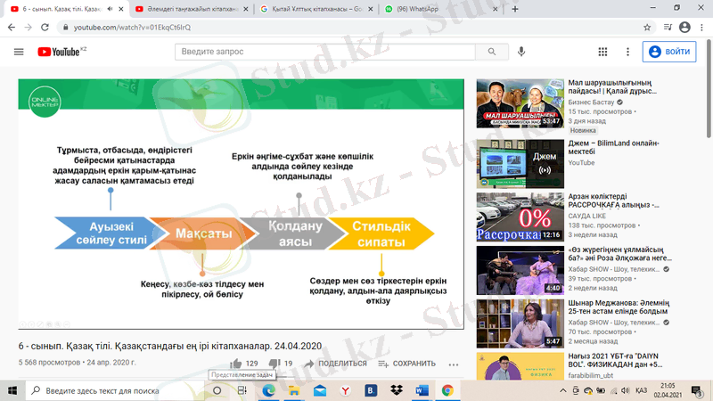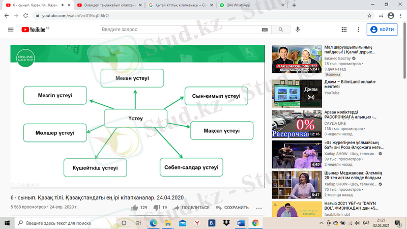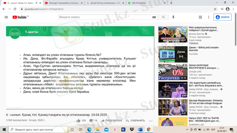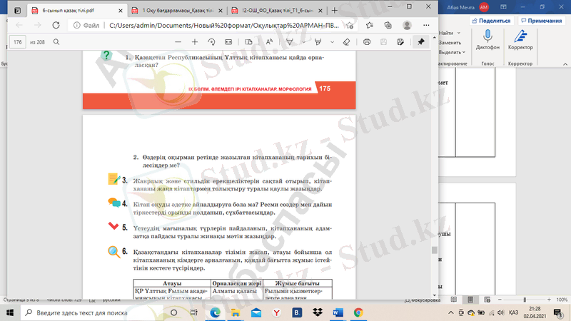 6-сынып қазақ тілі: Әлем және Қазақстан кітапханалары - ресми және ауызекі стильдерді салыстыру, үстеулердің мағыналық түрлері