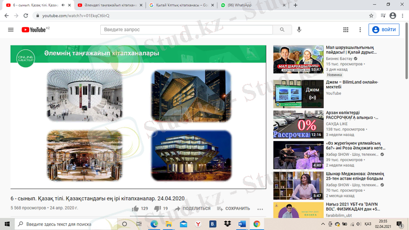 Оқушылар суреттер арқылы әлемдегі таңғажайып кітапханалармен, оның ішінде қазақстандағы заманауи кітапханалармен танысады, тақырыпқа байланысты өз пікірін білдіреді.