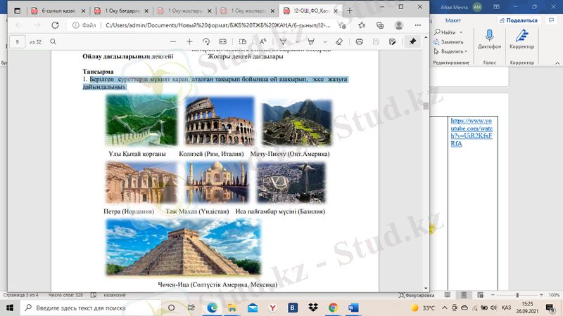 6-сынып қазақ тілі сабағы: Әлемнің жеті кереметі тақырыбында келісу-келіспеу эссесін жазу және орфографиялық нормалар (лексикография)