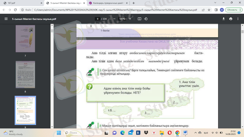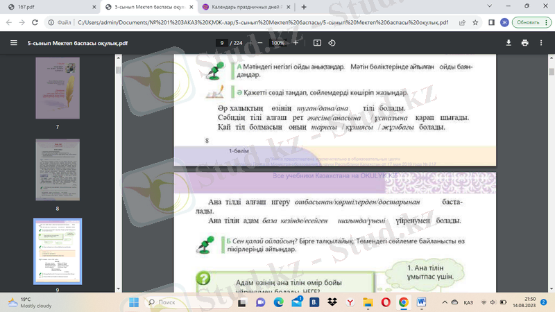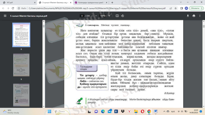 1. Мәтінді түсініп оқыңдар (1-тапсырма. 8-бет) .