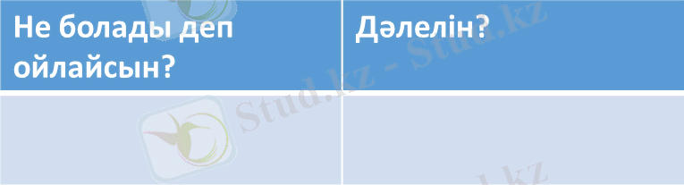 Мақсаты: Өткен сабақта алған ақпаратты еске түсіріп, ойын дәлелдей алады.