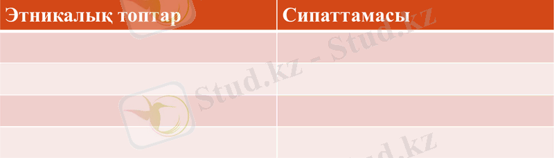 Түркі дәуіріндегі этникалық топтарды тап, олардың сипаттамасын анықта.