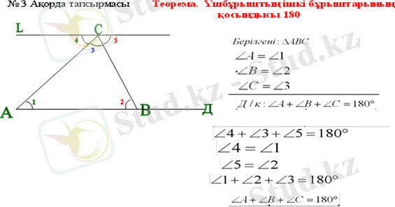 7. 1. 1. 18 үшбұрыштың сыртқы бұрышының анықтамасын білу және үшбұрыштың сыртқы бұрышы туралы теореманы дәлелдеу;