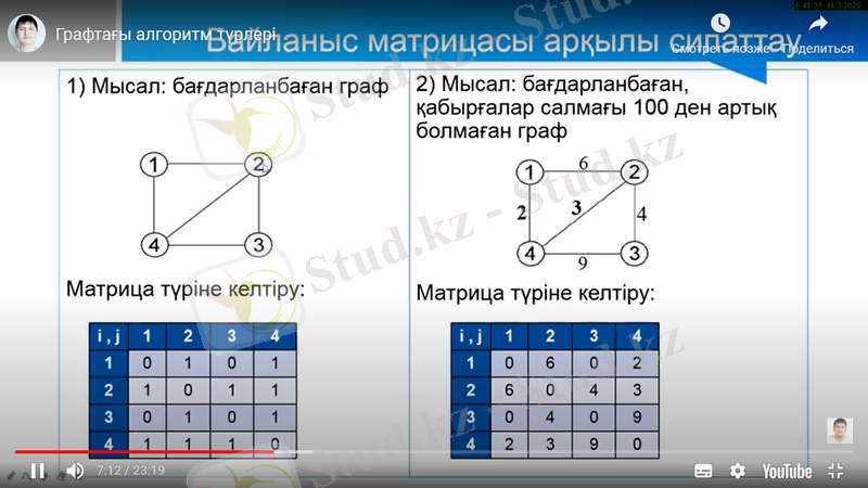10-сынып. Графтардағы алгоритмдер: көршілес матрица және программалау