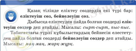 Бейнероликтен еліктеу сөздерге қатысты құбылыстарды көрсетемін. Анықтамамен жұмыс .