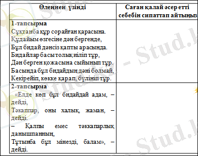 шығармадан өзіне әсер еткен үзіндіні таңдап алады; 1 ұ