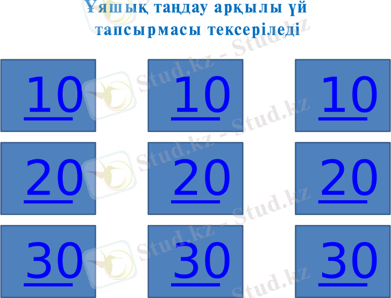 1. «Ұяшық »таңдау арқылы үй тапсырмасы тексеріледі