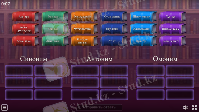 - Омоним, синоним, антоним сөздерге мысалдар келтір.