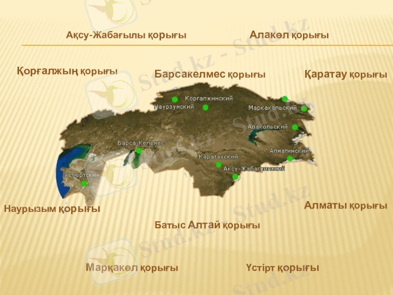 Мультимедия кешені арқылы Қазақстан корықтары мен табиғи саябақтардың, мысалы Ақсу Жабағлы, Көкшетау, Іле Алатау, Наурызым, Қорғалжын, Марқакөл, Үстірт, Батыс Алтай, Алакөл және т. б қорықтарды слайдтармен көрсету.