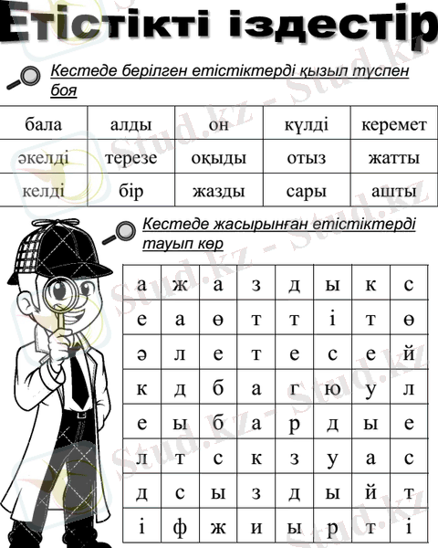 - Мәтіндегі мағынасы түсініксіз сөздерді белгіле, сол сөздердің мағынасын түсіндірме сөздіктен біліп ал.