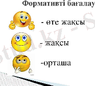 Орташа жауап-1 шапалақ; Толықтыруды қажет етеді-2 шапалақ; Толық жауап-3 шапалақ.