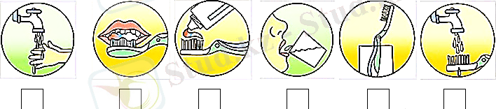 1-тапсырма:Тісті тазалау әрекетінің ретін анықтап, цифрлармен белгіле.