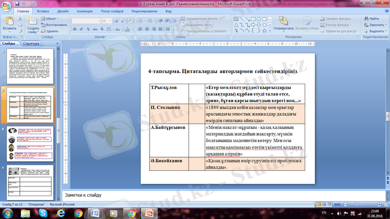 8. 3. 1. 2 - XX ғасыр басындағы Қазақстандағы қоғамдық-саяси процестерге баға беру