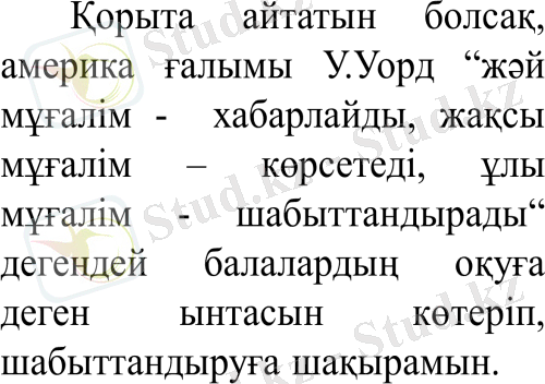 Мақсаты: оқушылармен қарым-қатынаста педагогтың өнеге құралдарын тиімді пайдалана білуі.