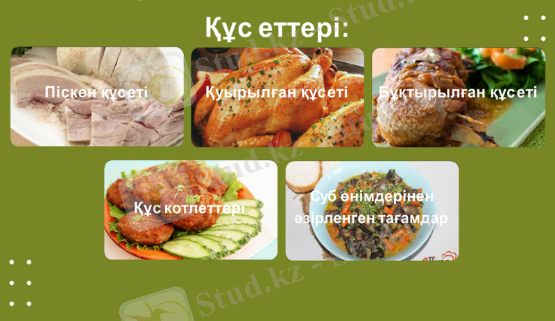 Сабақ тақырыбы : Құс етінен әзірленетін тағамдар