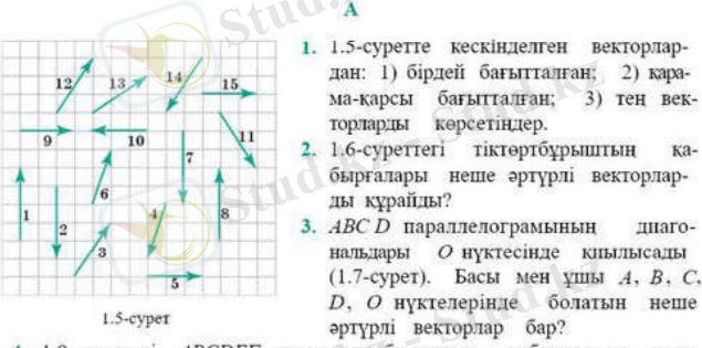 - Вектор ұғымы, векторлардың теңдігі және оның қасиеттері мен танысады. ;