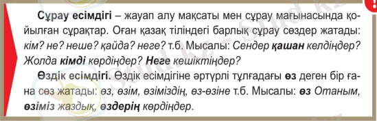 6. 4. 4. 1. Сөйлемдегі есімдіктің қызметін түсіну, есімдікті зат есім, сын есімнің орнына қолдану.
