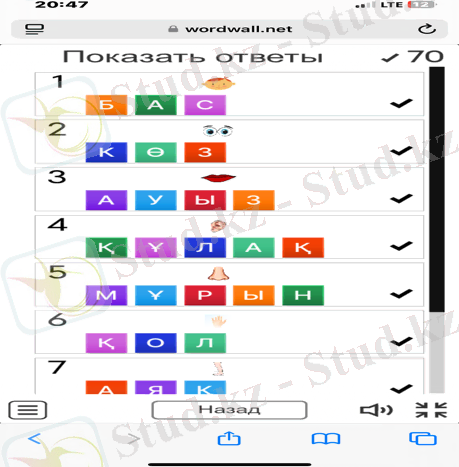 Әр дұрыс жауапқа 3балл