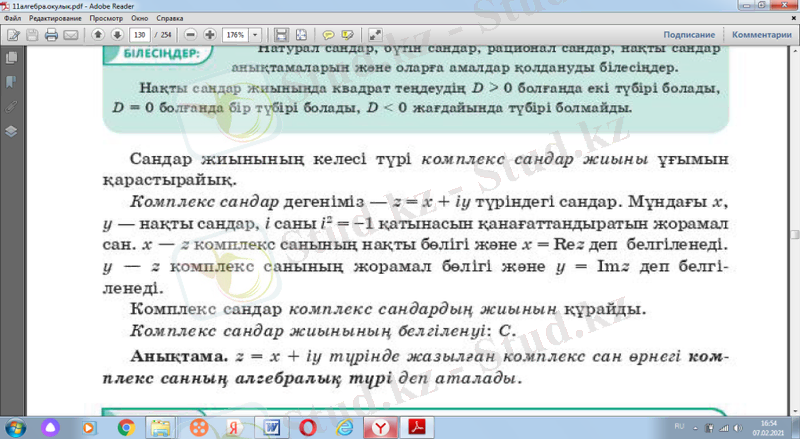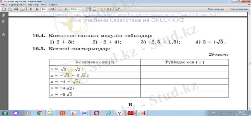 11 сынып: Комплекс сандар - жорамал және түйіндес сандар, модуль