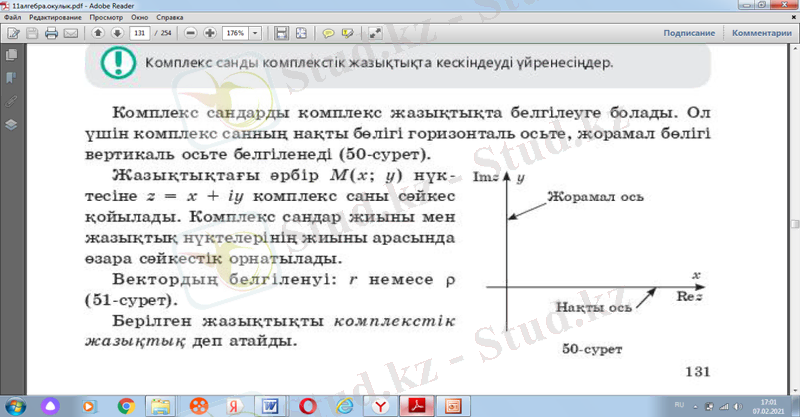 11. 1. 1. 2-комплекс санды комплекс жазықтықта кескіндей алу;