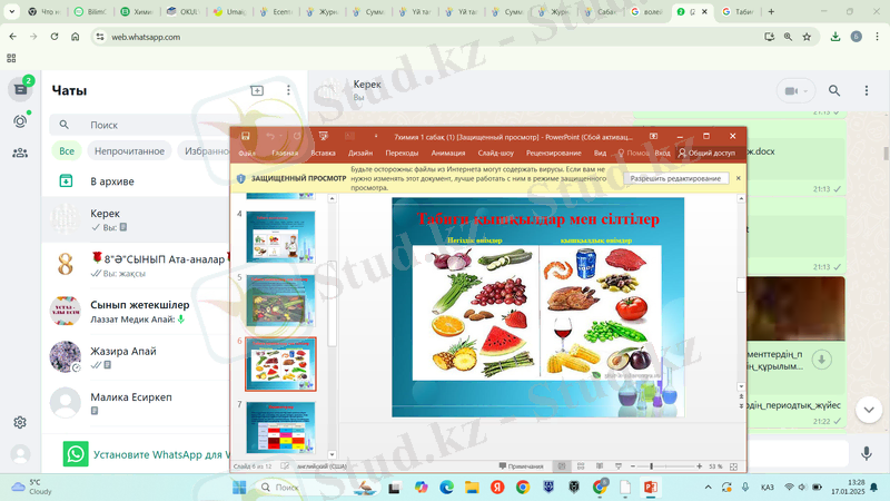 7 А сыныпқа арналған ашық сабақ: Табиғи қышқылдар мен негіздер, индикаторлар