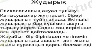 4. 2. 2. 1 - шығарманы қайта құруға, интерпретациялауға және бағалауға негізделген сұрақтар қою және жауап беру;