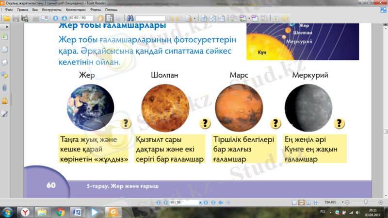 2-сынып дүниетану: Күн жүйесінің ішкі және сыртқы ғаламшарлары