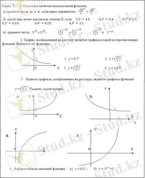 Көрсеткіштік функцияның қасиеттері мен графигі: 11 в сыныпқа арналған сабақ