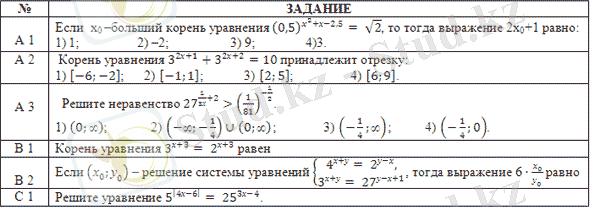 Білімділігі: Оқушыларға көрсеткіштік функция, қасиеттері мен графигін салу, көрсеткіштік функцияның қасиеттерін пайдаланып есептер шығару және графигін салу жолдарын түсіндіру. Көрсеткіштік теңдеулерді, теңсіздіктерді және олардың жүйелерін шешуге үйрету;