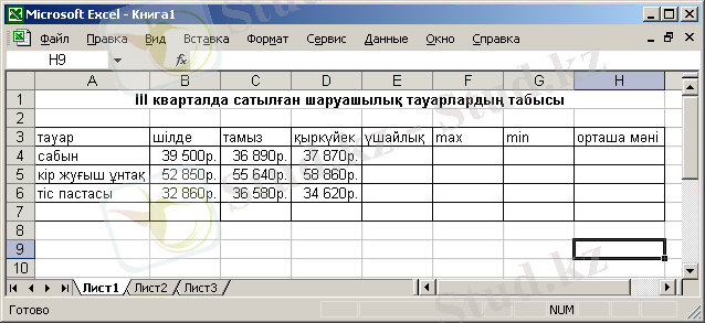 - Бос ұяшықтарды формулалармен толтырындар.