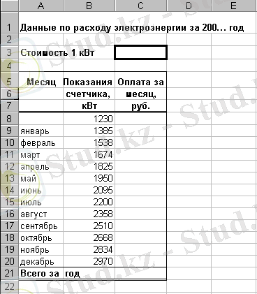 Үлгі бойынша электроэнергия төлемінің кестесін құрыңдар: