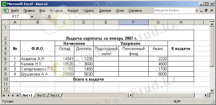 Практикум 4. Мұғалімдердің еңбекақысын есептеу кестесі.