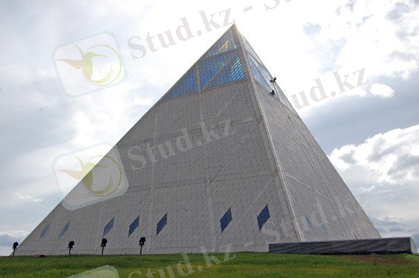 Бейбітшілік пен келісім сарайы - астаналықтар мақтан тұтатын нысандардың бірі. Сәулет өнеріндегі хай-тек стилінің хас шебері лорд Норман Фостердің жобасы негізінде, түріктің «Сзмбул-Иншат» компаниясының мықтап қолға алуымен небәрі 13 айдың ішінде жұртшылықтың көзайымына айналған ғимарат шынымен-ақ керемет. Рухани орталықтың сырты мысырлық пирамида үлгісін көзге елестетсе, іші де өнер құдіретін мойындата түседі. Биіктігі 75 метр, 25 қабатты бұл алып ғимараттың алғашқы қадасы қағылған күннен бастап, 900 шаршы метр шыны, 1200 шаршы метр гранит, 10 000 шаршы метр керамикалық плиталар, 6000 шаршы метр төсеніш кілем, 2700 шарша метр тот баспайтын арнайы болаттан жасалған панель плиталары сияқты көптеген құрылыс материалдары пайдаланылған.