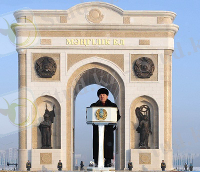 Еліміз Тәуелсіздігінің 20 жылдығы елордамызда бой көтерген тағы бір қайталанбас ескерткіш - «Мәңгілік ел» салтанат қақпасымен айшықталды. Бабалардың сан ғасырлық арманының орындалуы, міне, енді Қазақ елінің мәңгілігі мен жасампаз жеңістерінің бейнесіндей сәулет туындысы тұғырында көрініс тапты .