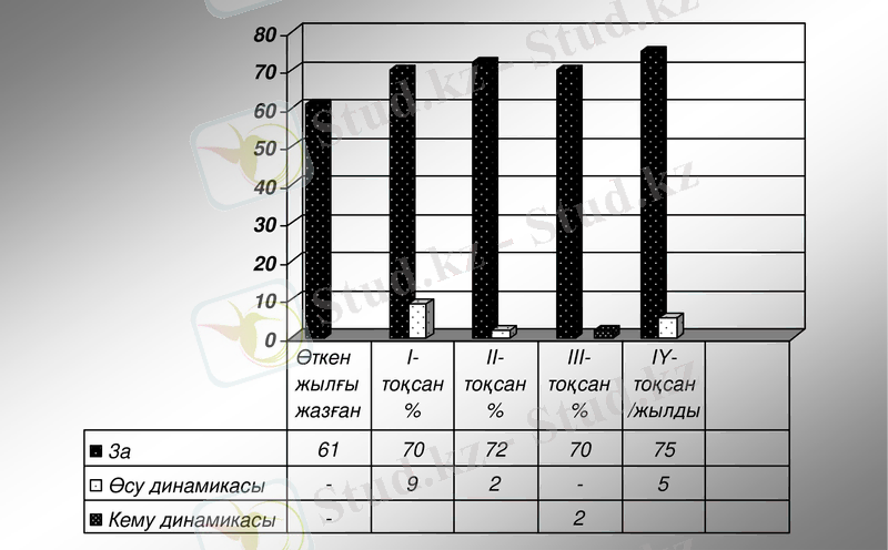 ланған. Авторлары:К. Жүнісқызы, Ә. Бірмағанбетова, Қ. Аймағанбетова, Қ. Жүкешев Алматы «Атамұра» 2011 жыл 3-басылым, өңделген. «Адам-қоғам перзенті», «Табиғат», «Қазақстанның өсімдіктері мен жануарлары», «Дала және шөлді аймақтар», «Ғарыш дегеніміз не?», «Қоғам» тараулары бойынша тест тапсырмалары алынды. Жалпы әр пәннің өз ерекшеліктері болады. Сол ерекшеліктерді басшылыққа ала отырып пәндер бойынша сыныпта төмендегідей жұмыстар жүргізілді. Оқушылардың сөздік қорын молайту үшін, жаңа сөздің мәнін, мағынасын жете түсіндіріп, белсенді сөздік қорын арттыру мақсатында әр түрлі шығармашылық тапсырмалар орындалды. Ауыз әдебиет үлгілері мақал-мәтелдер, жұмбақ, жаңылтпашт. б түрлерін қолдандым. Тіл дамыту жұмысы-күрделі де шығармашылық үрдіс. Тіл дамыту ең бірінші кезекте баланың өмірден туатын қажеттілік, өз сұранысын айтуға талпынуынан туады. Оқушылардың ой-қиялын дамытып, эстетикалық сезімдерін ұштай түсетін шығармалардың бірі ертегілер. Әдебиеттік оқу пәнінен «Ең жақын кім адамға?» тақырыбында оқушылар рөлдерде ойнап, ертегіні сахналады. «Билердің шешендігі» тақырыбында 20. 09. 11күні «Шешен сөздер» сайысын, сонымен қатар оқушылар арасында «Жұмбақ айтысы» ұйымдастырылды. Оқушылар өз ойларынан өлең жолдарын құрастырып жұптасып, бір-бірімен айтысты. Қазан айында «Алтын күз» мерекесі және тілдер мерекесіне орай мектепте 5а сынып оқушыларымен «Тілім барда айтылар сөз ойдағы» тақырыбында интеллектуалды сайыс өткіздім. Бұл сайыста өз сыныбым білім жағынан басымдылықтарын көрсете білді. 20. 10 күні интерактивті тақтамен «Жусан иісі» тақырыбында сабақ өткіздім. Қазақ тілі пәнінен 14. 11 күні «Құрмалас сөйлем» тақырыбында интерактивті тақтамен сабақ өткіздім. Иновациялық және ақпараттық оқытуды жүзеге асыруда сыныпта жаңа технологияны қолданамын: сын тұрғысынан ойлау және жазу, топтастыру, Қараевтің деңгейлеп оқыту технологиясын қолданамын Сонымен қатар интерактивті тақтамен «Күрделі сөздер» тақырыбында ашық сабақты өткіздім. Математика пәнінен 1тоқсан соңында №1 қазақ орта мектебінің 4 сынып оқушыларымен «Білімді мыңды жығады» атты интеллектуалды сайыс өткіздім. Бұл сайыстағы білімдері ұпай бойынша тең түсті. Сонымен қатар сыныбымдағы Жұмажанов Асылжан Қасым әндерін орындаудан мәнерлеп оқу сайысына қатысып, мақтау қағазымен марапатталды.