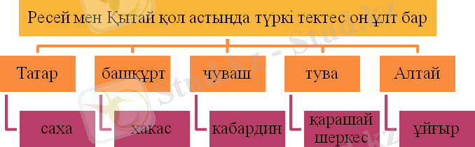 - Қазіргі кездегі түркі тектес халықтардың қалыптасу кезеңдері туралы айтыңдар