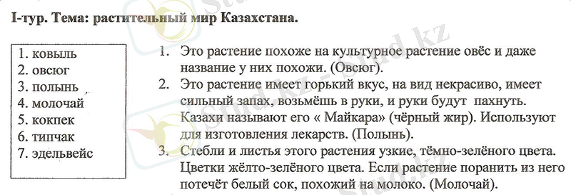 І кезең. Қазақстанның өсімдіктер әлемі