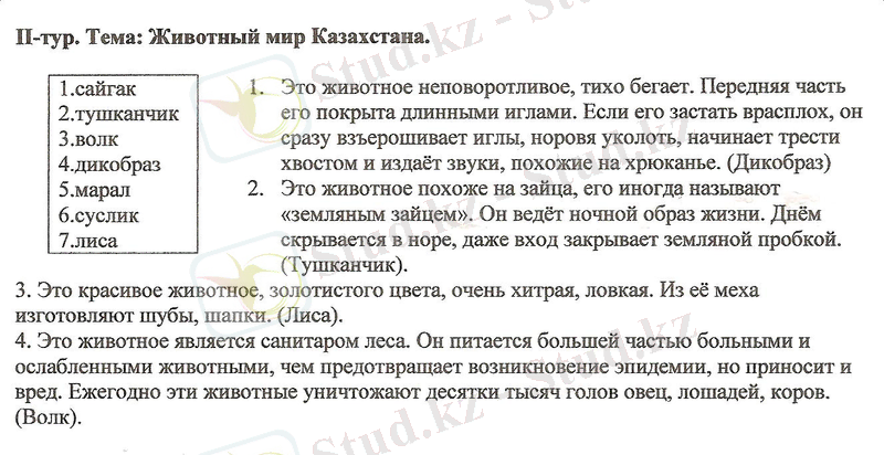 ІІ кезең. Қазақстанның жануарлар әлемі