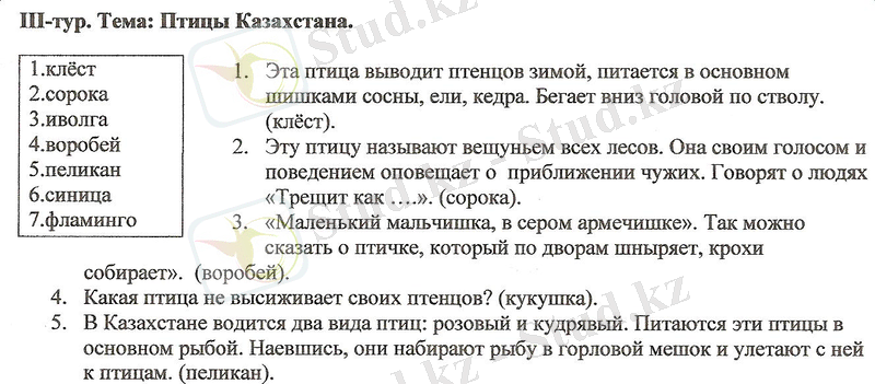 3. Кішкене ғана сұр киімді бала. Бұл құс аулада жүреді, қалдықты жинайды. (қара торғай)