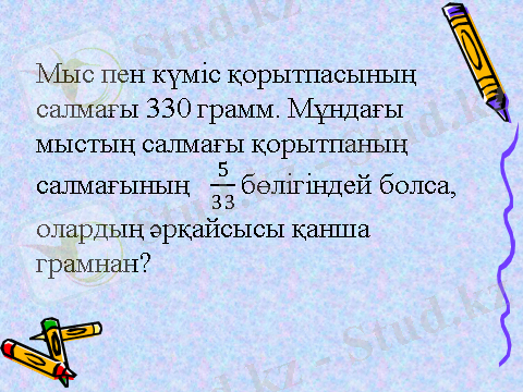Сабақтың тақырыбы: Жай бөлшектерді бөлуге есептер шығару