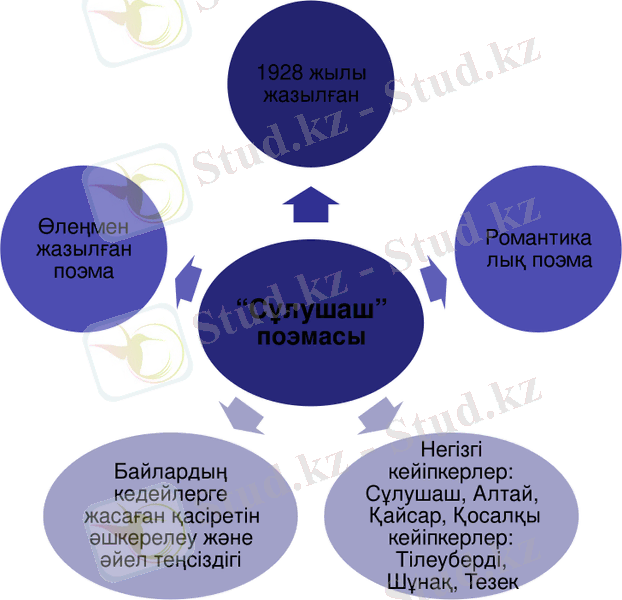 - Поэмалары. «Сұлушаш» поэмасы /Кесте бойынша талдау жүргізіледі/.