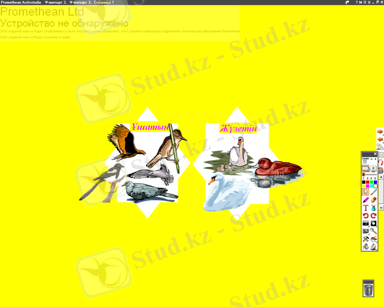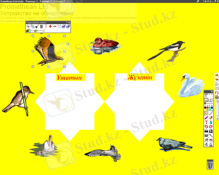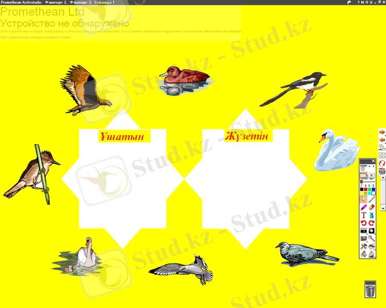 Төменде сабақты өткізу барысында қолданылған «Құстарды қасиеттеріне байланысты топтау» тапсырмасының дайындалу әдісі беріліп отыр.