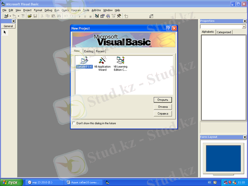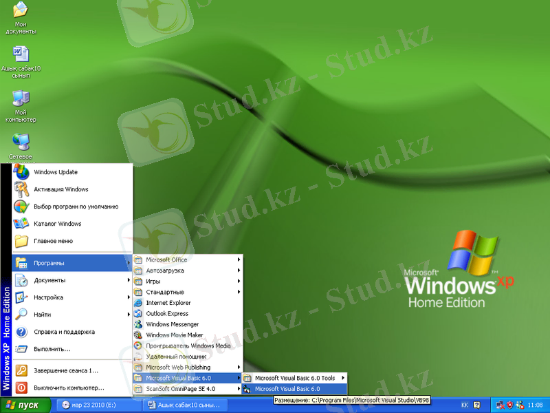 Visual Basic программасын іске қосу жолы төмендегі суретте көрсетілген.